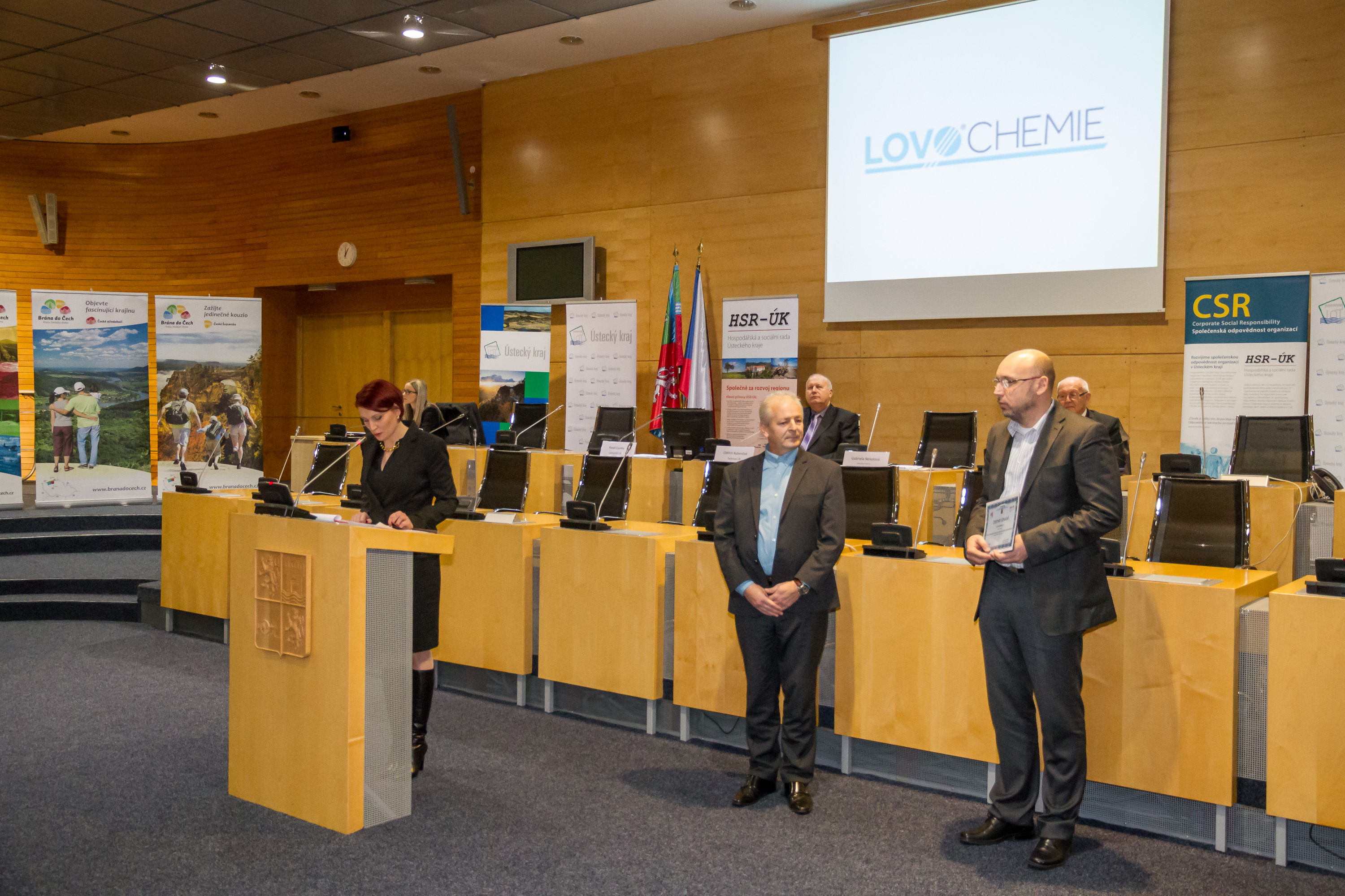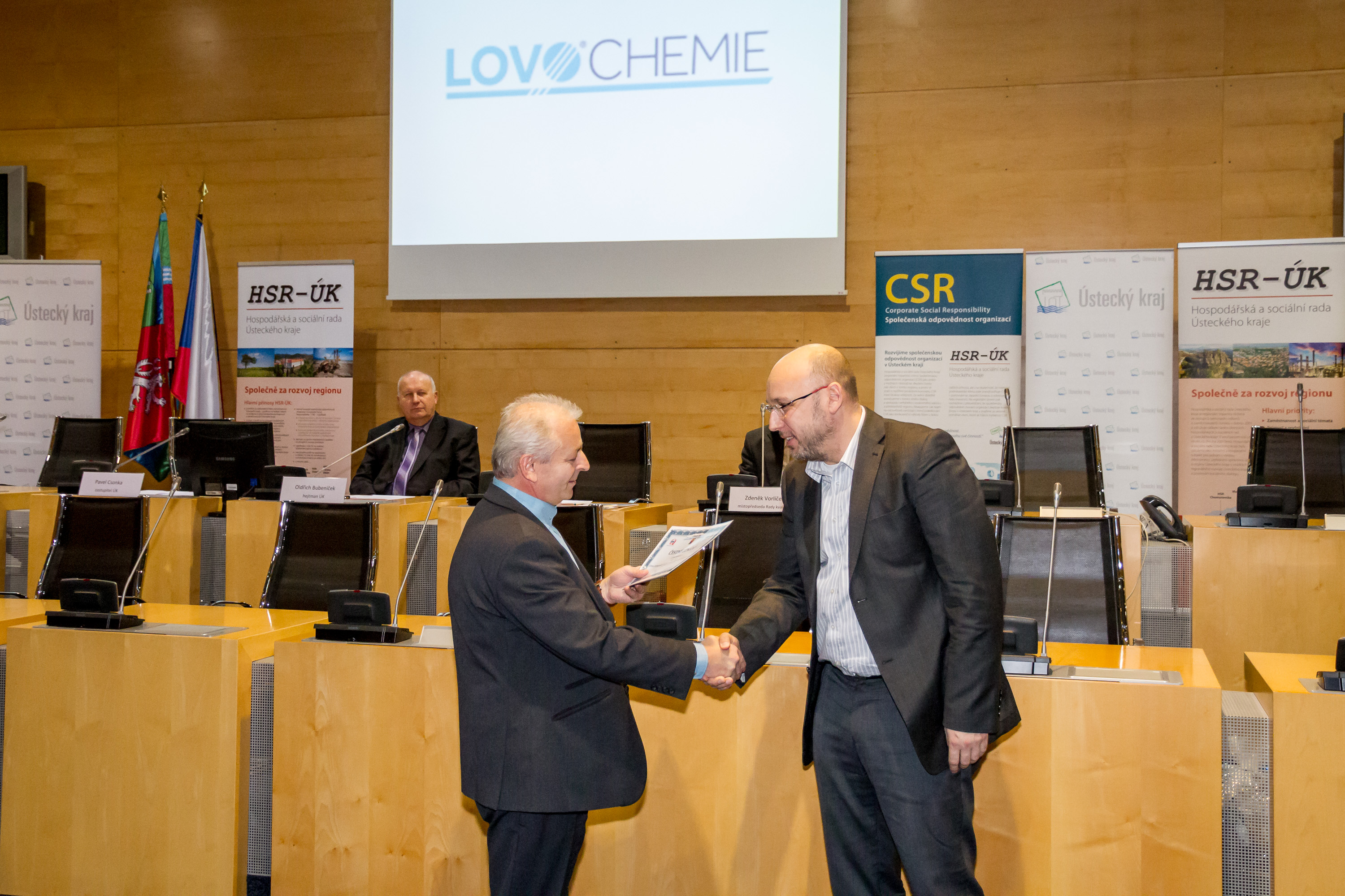 V úterý 15. 12. 2015 byli na Krajském úřadě Ústeckého kraje oceněni vítězové prvního ročníku Ceny Ústeckého kraje za společenskou odpovědnost. Společnosti z regionu měly možnost přihlásit se do hodnocení od letošního května. Cenu Ústeckého kraje za společneskou odpovědnost výhlásili Ústecký kraj společně s krajskou tripartitou Hospodářské a sociální rady Ústeckého kraje (HSR-ÚK) a s Radou kvality České republiky. Díky tomu se Ústecký kraj zařadil po bok dalších čtyř krajů v ČR, které toto ocenění udělují. Prvního ročníku se zúčastnilo na 23 subjektů, jež tvořily malé i velké podniky, obce a další organizace veřejného sektoru. V kategorii podnikatelského sektoru u podniků s více než 250 zaměstnanci obsadila krásné 3. místo společnost Lovochemie.